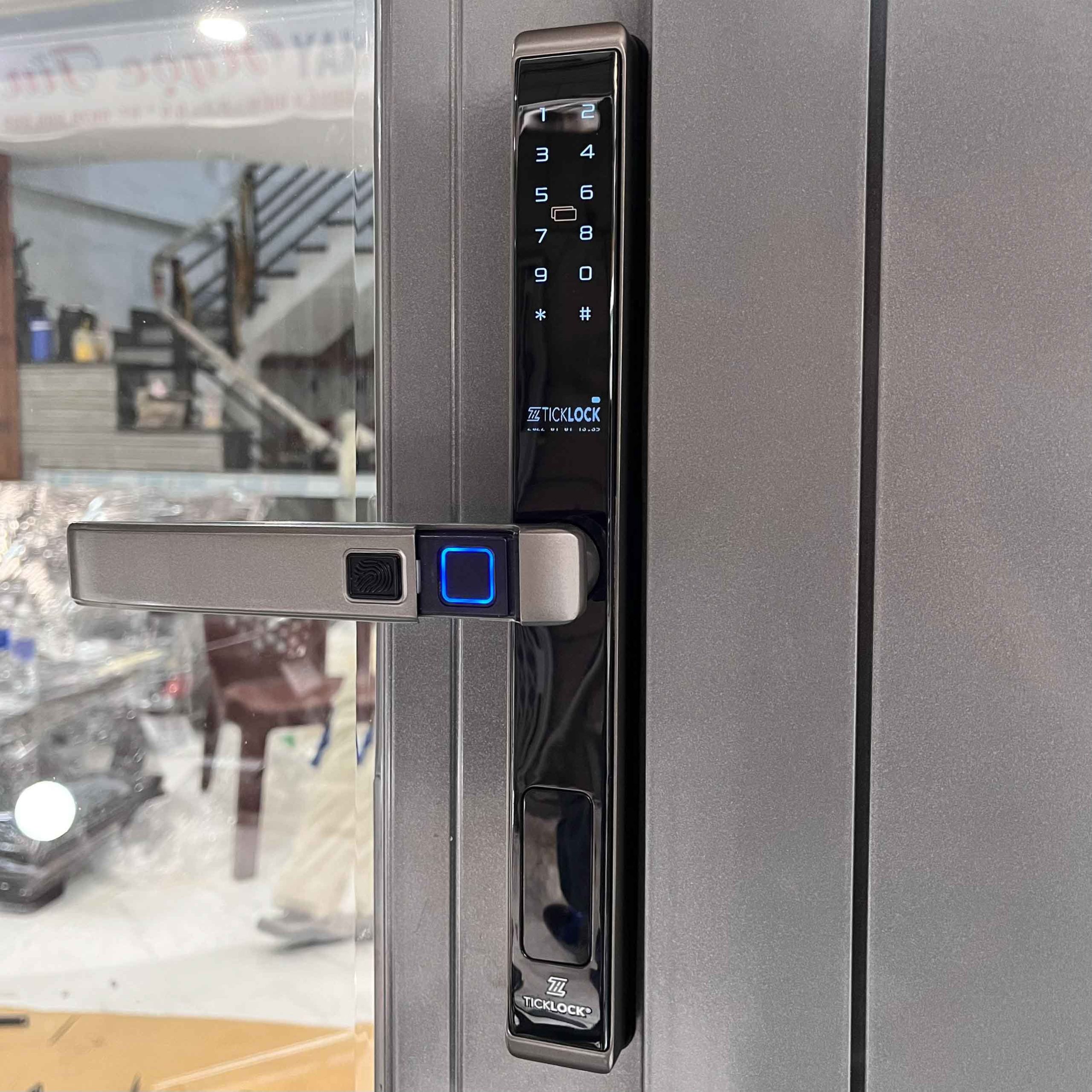 Khóa cửa thông minh TICKLOCK VIỆT NAM I939 Pro với tính năng 5 trong 1, có thể được mở khóa bằng: Vân tay, mật mã, khóa từ, chìa khóa cơ dự phòng và tích hợp qua ứng dụng trên điện thoại (APP Tuya) điều khiển từ xa.