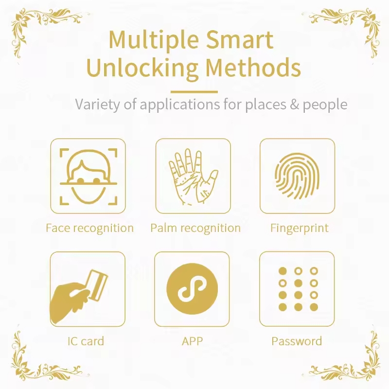 Khóa cửa thông minh TICKLOCK KJ001 với tính năng 6 trong 1, có thể được mở khóa bằng: Face ID, Chỉ tay, Vân tay, thẻ từ RFID, Mật mã, và ứng dụng (app) trên điện thoại smartphone. Ngoài ra, chìa khóa cơ dự phòng cũng là một bộ phận không thể thiếu trên model cao cấp này.