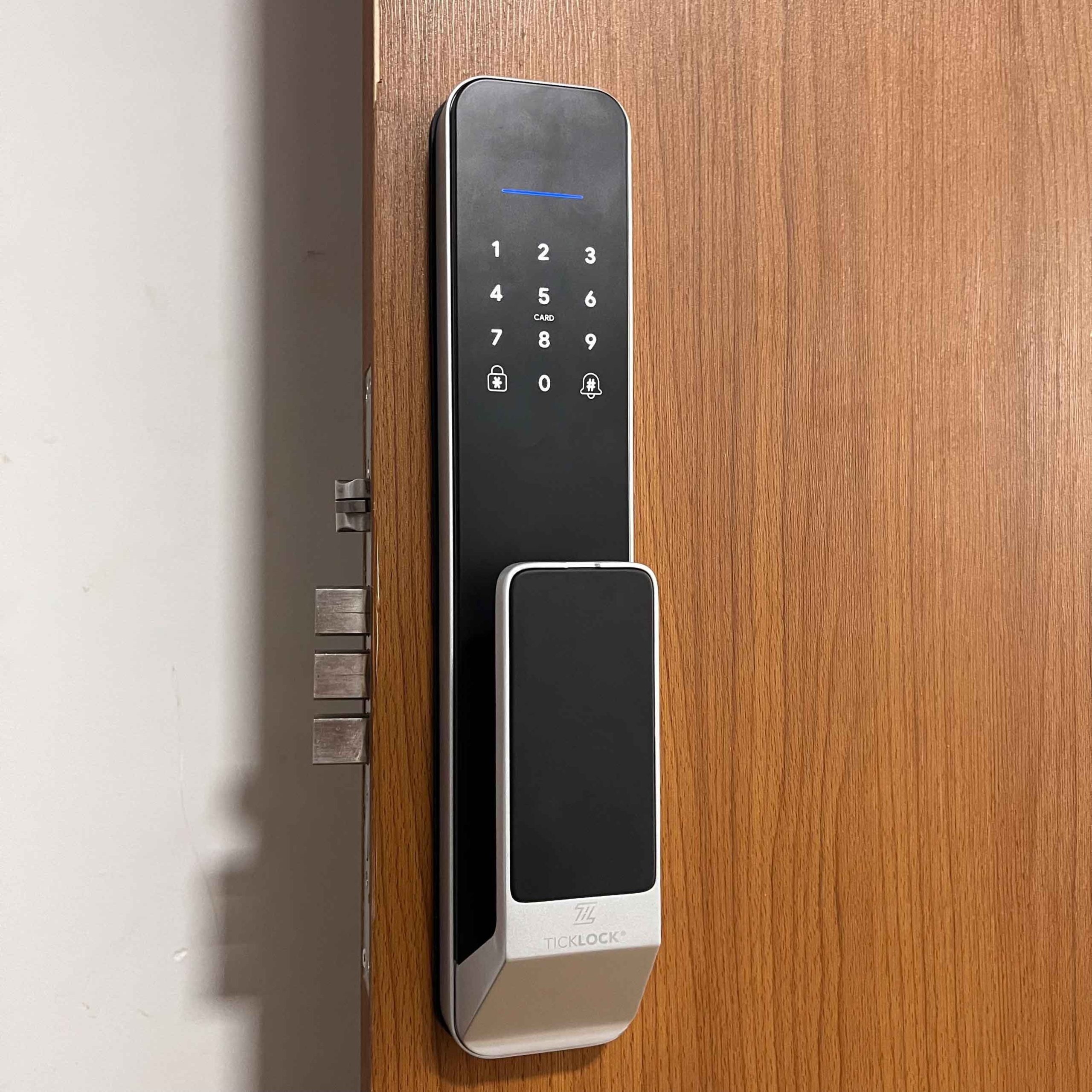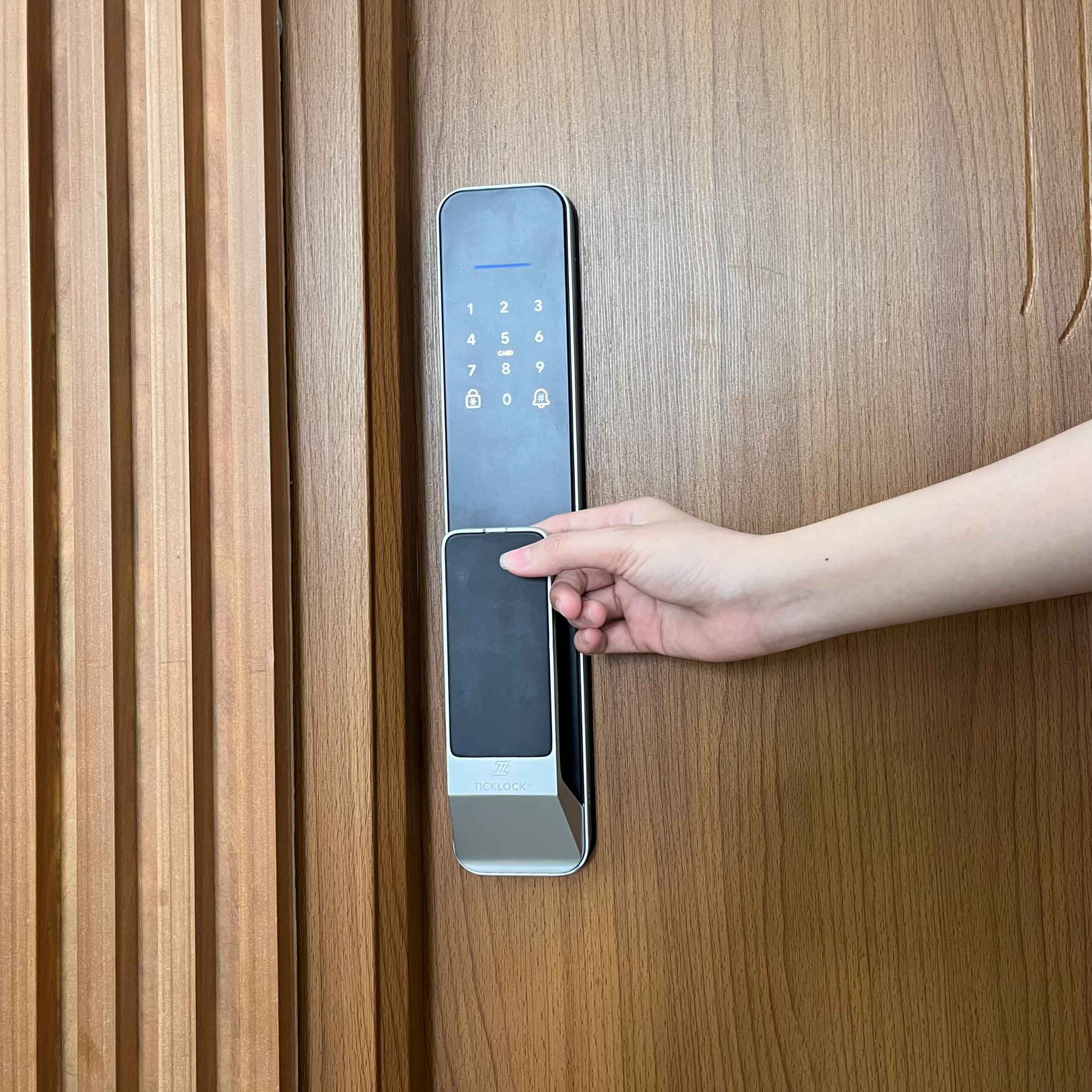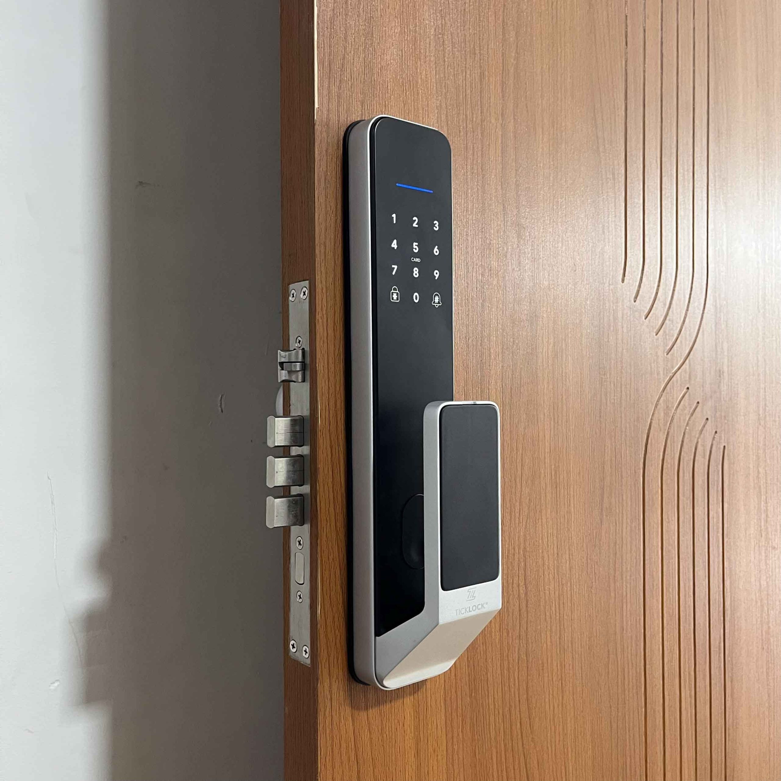 Khóa cửa thông minh TICKLOCK VIỆT NAM A – 660 với tính năng 5 trong 1, có thể được mở khóa bằng: Vân tay, mật mã, thẻ từ RFID, chìa khóa cơ dự phòng và tích hợp qua ứng dụng trên điện thoại.