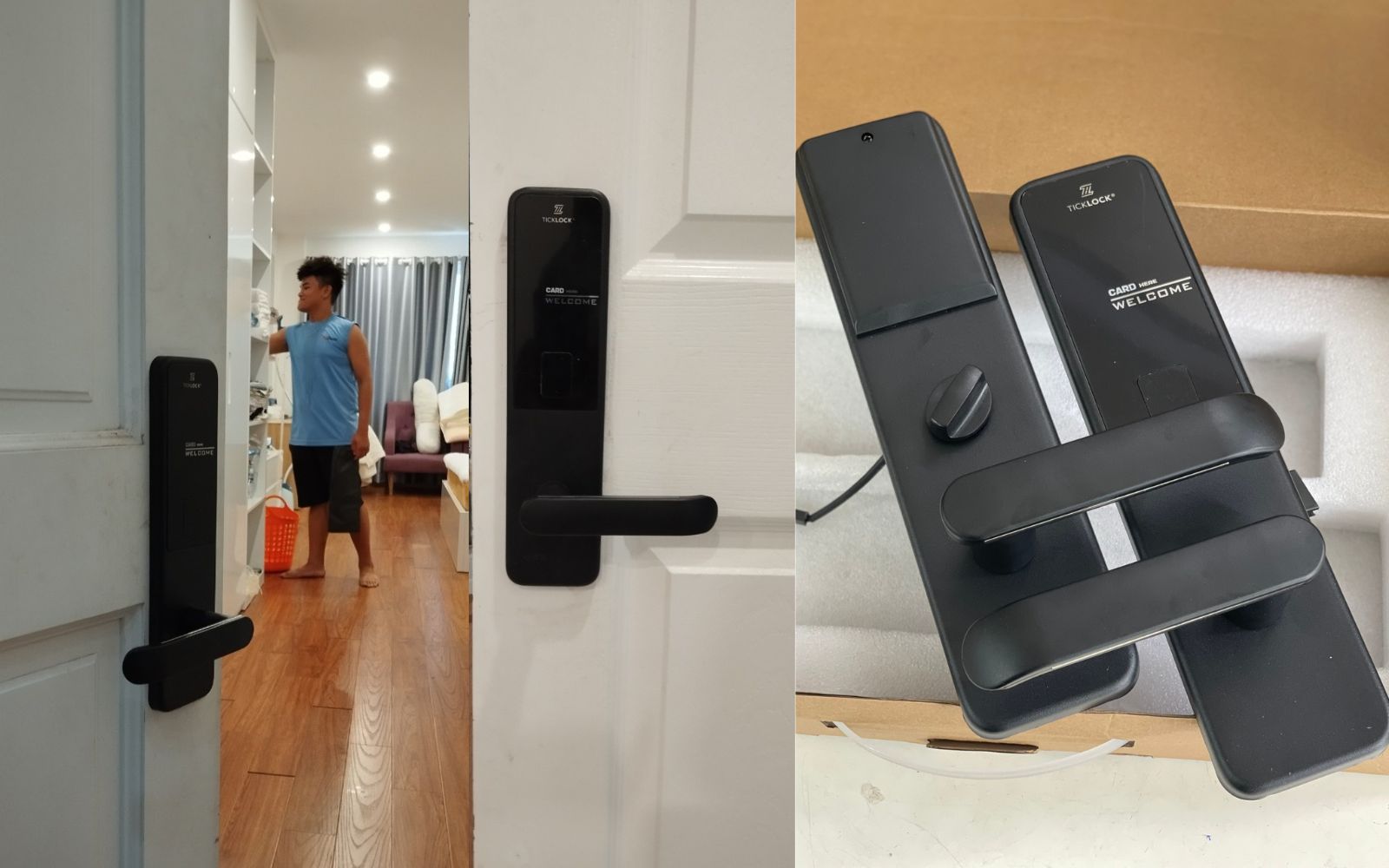 TICKLOCK VIỆT NAM cung cấp các loại sản phẩm khóa cửa thông minh bao gồm khóa cửa vân tay, khóa thẻ từ, khóa mã số, khóa nhận diện khuôn mặt, khóa tích hợp Smartphone, khóa Push Pull, khóa thông minh cửa kính văn phòng, khóa cửa thông minh khách sạn, khóa cửa lùa, khóa cửa nhôm, khóa cửa nhựa, v.v. .
